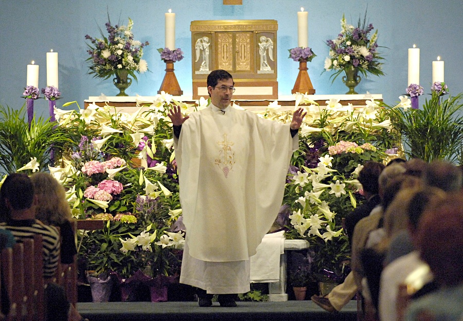 2005년 4월 5일 플로리다 걸프포트에서 열린 장례 미사에서 ‘생명을 위한 사제단’ 전국 책임자인 프랭크 파본 신부가 강론을 하고 있다. 로이터