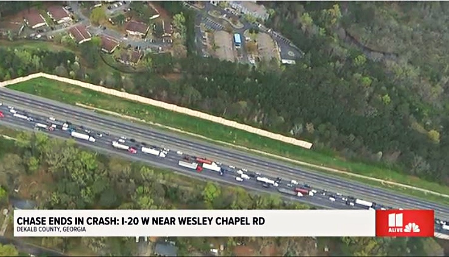 경찰 추격 사건으로 디캡 카운티 지역의 I-20 일부가 폐쇄되어 교통 체증이 이어지고 있다.