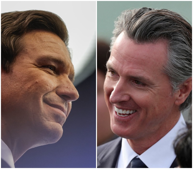 론 디샌티스 플로리다 주지사(왼쪽)와 개빈 뉴섬 캘리포니아 주지사. 로이터