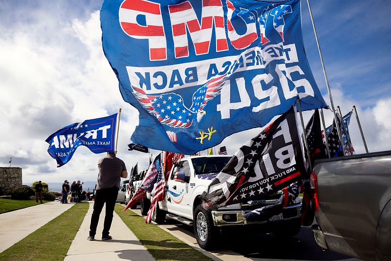 공화당 대선 후보 트럼프 전 대통령 지지자들이 슈퍼 화요일 3일 전 랜초 팔로스 베르데스의 트럼프 내셔널 골드 클럽에서 ‘마가 크루즈’ 집회를 준비하고 있다. 로이터