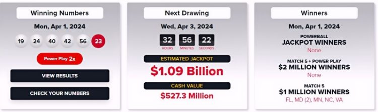 1일 저녁 파워볼 복권 추첨에서 또다시 잭팟 당첨자가 나오지 않아 당첨금이 10억 9천만 달러로 치솟았다. 이는 미국 복권사상 9번째, 파워볼 역사상 4번째 규모의 당첨금이다.