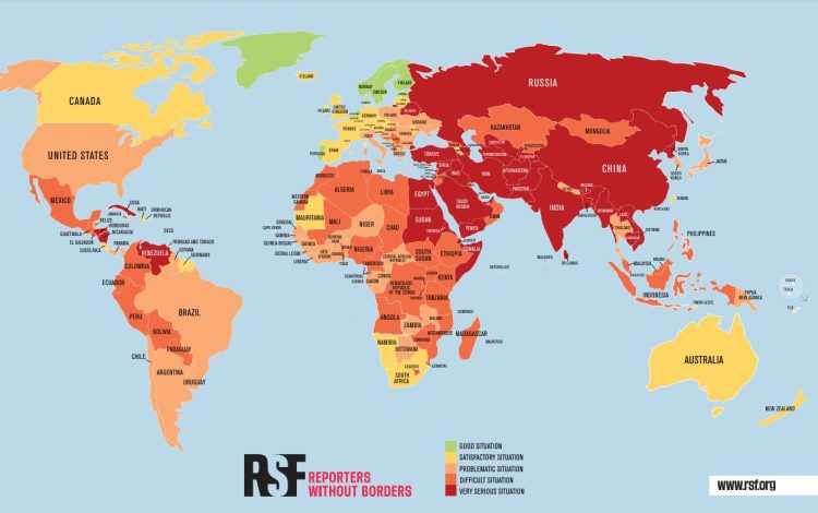 RSF는 전 세계 180개국의 언론 자유 환경을 평가해 ‘좋음’, ‘양호함’, ‘문제 있음’, ‘나쁨’, ‘매우 나쁨’으로 분류한다.