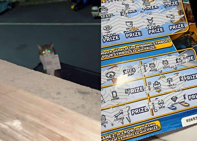 지난 26일 영국 데일리메일 등 외신에 따르면 영국 콘월주 펜잔스에 사는 33세 여성 메건 크리스찬은 지난 12일 자신이 키우는 고양이가 복권을 물고 오는 영상을 SNS에 게재했다.