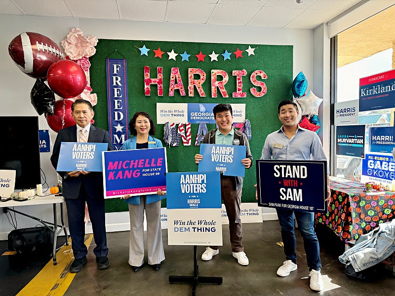 2일 노크로스 소재 귀넷 민주당 캠프에서 샘 박 주 하원의원(107지역구), 99지역구에 출마하는 미쉘 강 후보, 한병철 애틀랜타 중앙교회 담임목사, 타일러 리 피치트리릿지고교 학생은 기자회견을 갖고 “한인 한 명 한 명의 표가 중요하다”고 입을 모았다. 이들은 “한인들을 위해 카멀라 해리스 부통령을 뽑아야 한다”고 강조했다.