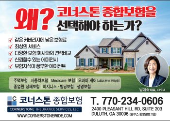 업체명 : 코너스톤 종합보험 남계숙 CORNERSTONE INSURANCE SERVICE, LLC 전화 : 770-234-0606 주소 : 2400 Pleasant Hill Rd. 203, Duluth, ...