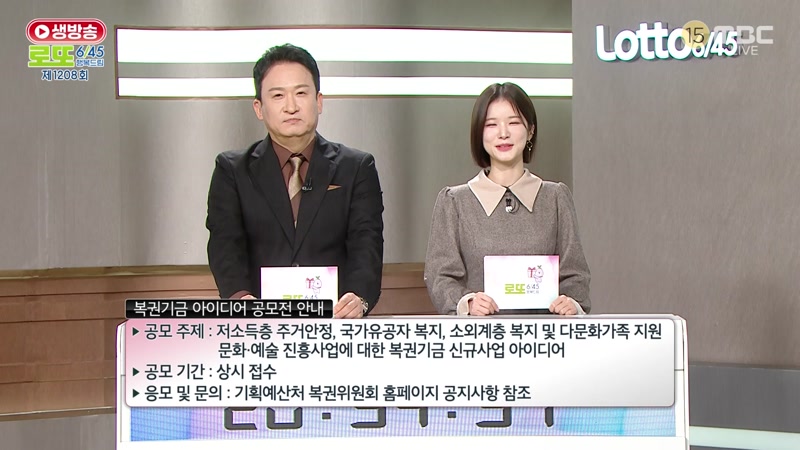 생방송 행복드림 로또 6/45 : 01/24/2026